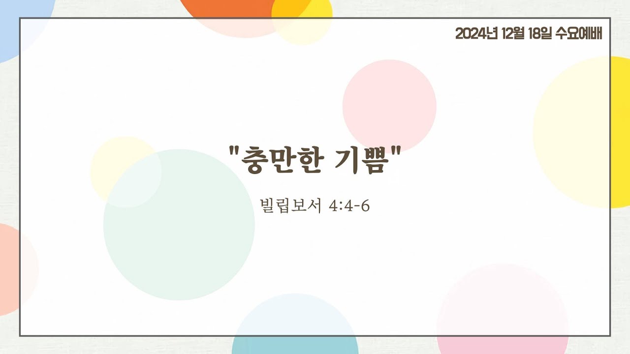 수요예배(2024.12.18) 빌립보서 4장4~6절 "충만한 기쁨"