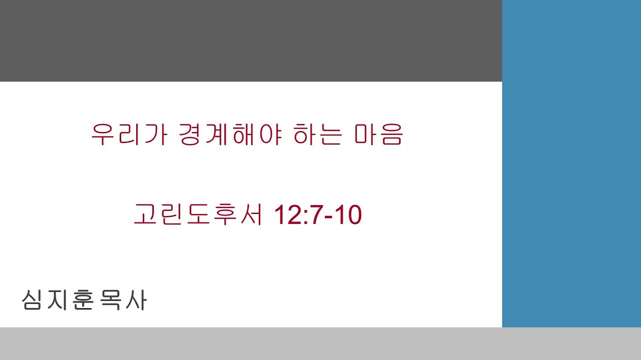 수요예배(2025.02.19) 고린도후서 12장7~10 "우리가 경계해야 하는 마음"