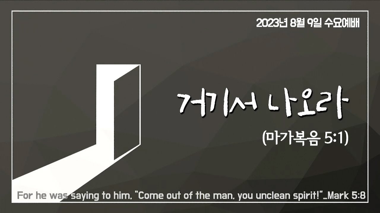 수요예배(2023.08.09) 마가복음 5장 1절 거기서 나오라