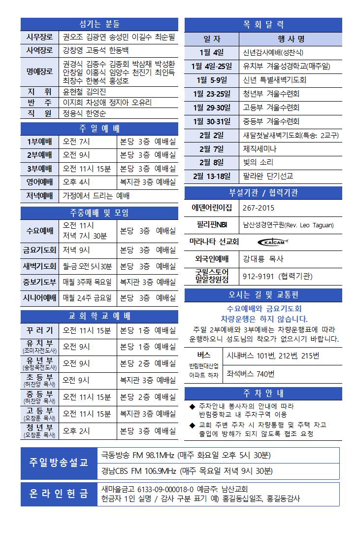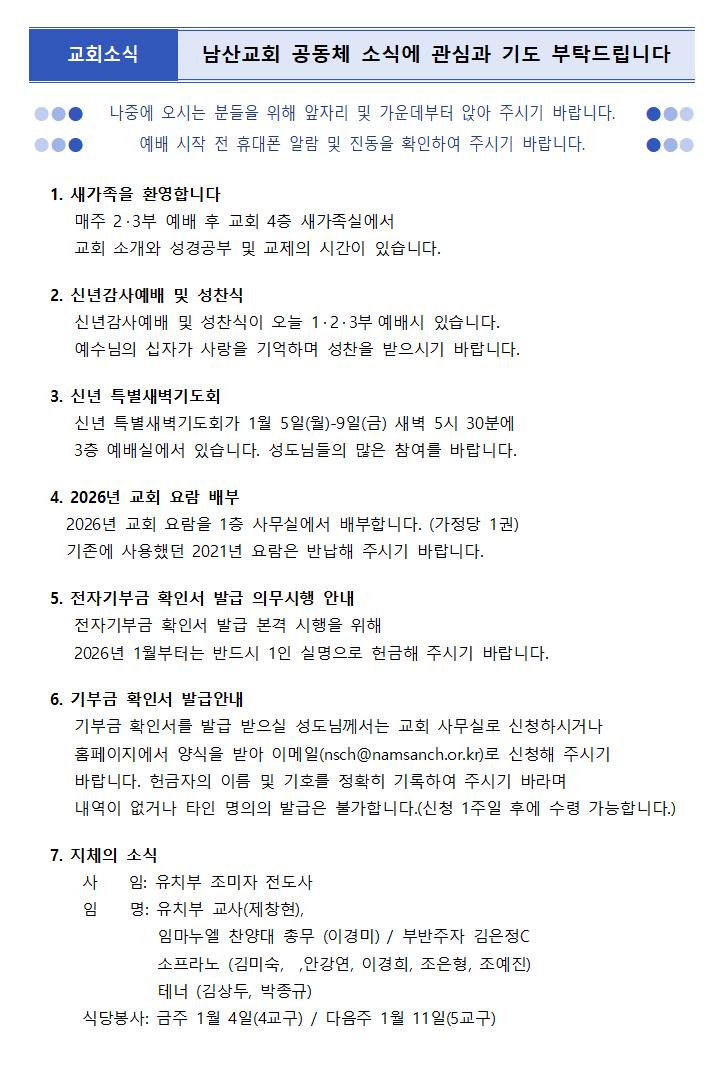 1월 4일 주보 페이지 정보 작성자한영순 댓글 0건 조회Hit 20회 작성일Date 26-01-14 16:44 본문 새해가 밝았습니다.그런데 주보는 이제 올립니다.바뻐서인지게을러서인지헷갈리는 한 주 입니다. 목록 이전글1월 11일 주보 26.01.14 다음글12월 28일 주보 25.12.26