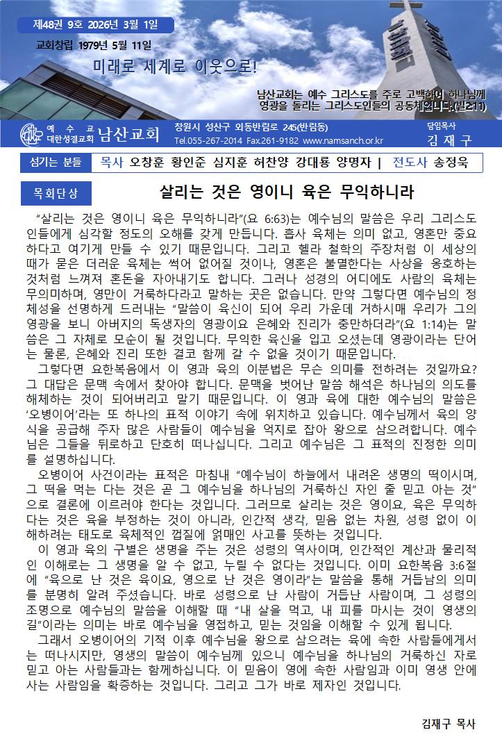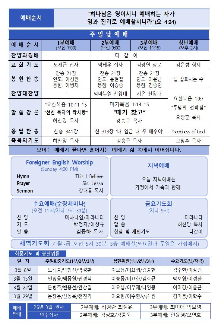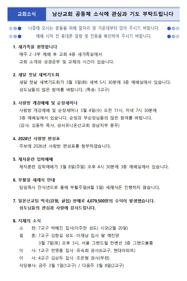 3월 1일 주보 페이지 정보 작성자한영순 댓글 0건 조회Hit 68회 작성일Date 26-02-28 10:30 본문 107년전 우리 선조들이 외쳤던 그 함성!!!대한독립만세~~~~ 목록 다음글2월 22일 주보 26.02.28