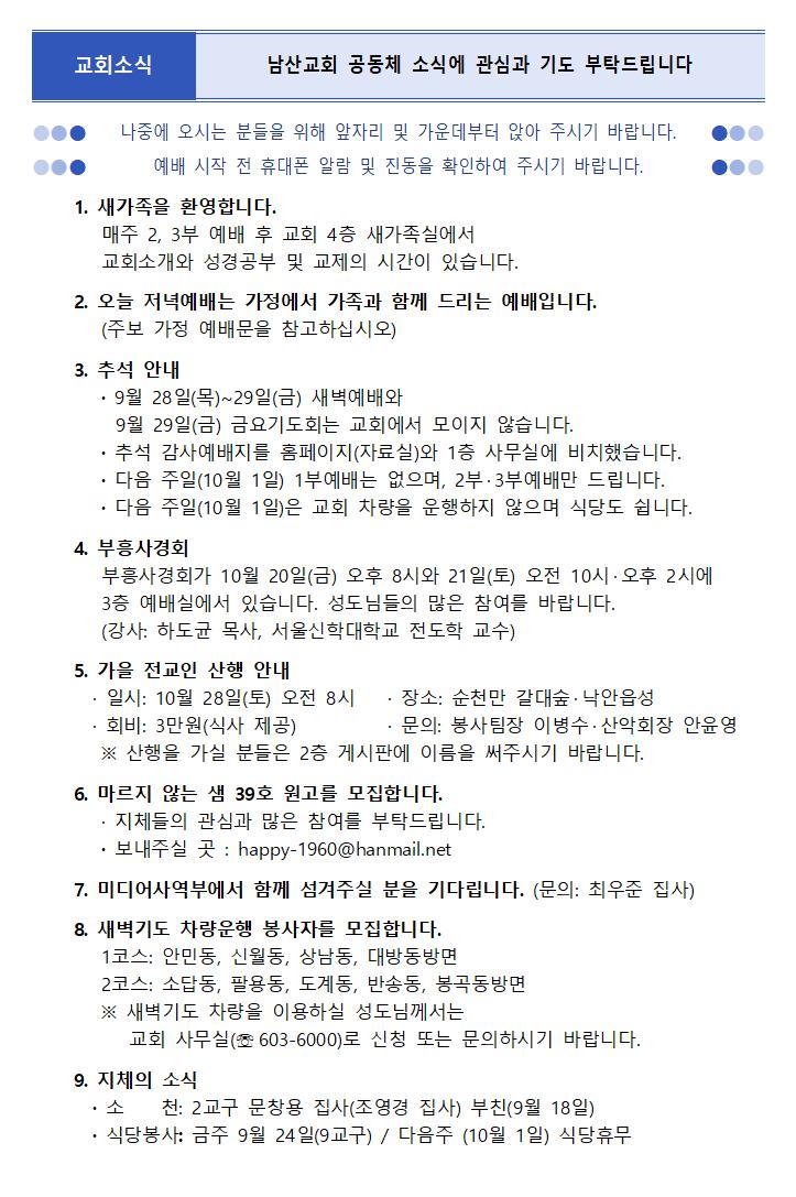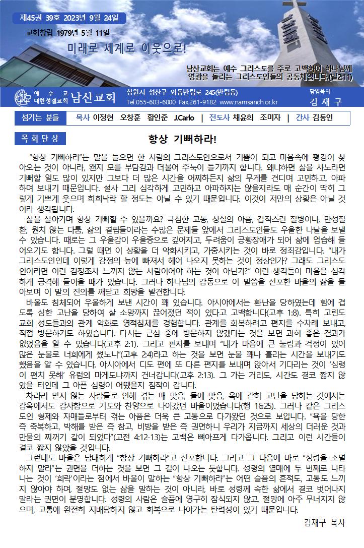 9월 24일 주보 페이지 정보 작성자한영순 댓글 0건 조회Hit 1,036회 작성일Date 23-09-24 15:11 본문 추석!! 가족과 함께 주님안에서 행복하세요 목록 이전글10월 1일 주보 23.09.27 다음글9월 17일 주보 23.09.16