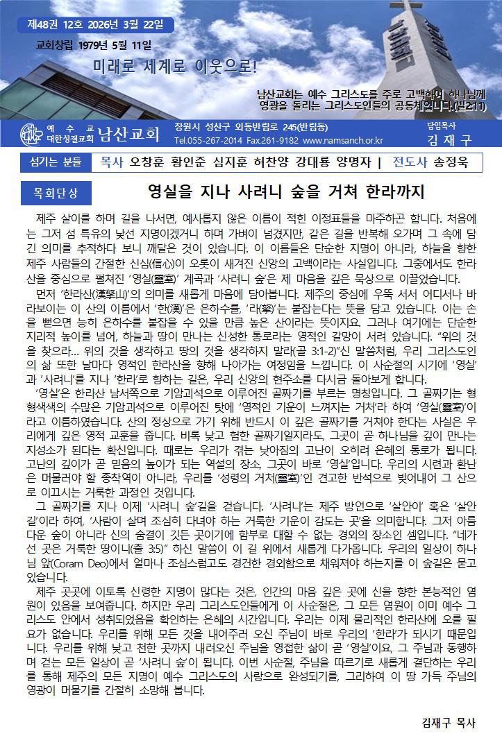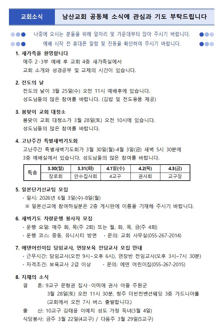 3월 22일 주보 페이지 정보 작성자한영순 댓글 0건 조회Hit 21회 작성일Date 26-03-20 16:22 본문 사순절 기간입니다. 목록 다음글3월 15일 주보 26.03.20