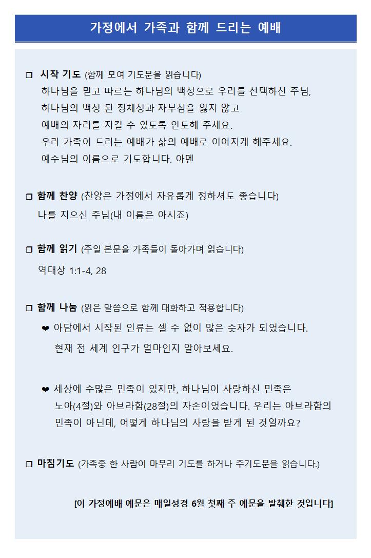 6월 1일 주보 페이지 정보 작성자한영순 댓글 0건 조회Hit 325회 작성일Date 25-06-11 16:52 본문 ㅎㅎㅎㅎ 목록 이전글6월 8일 주보 25.06.11 다음글5월 25일 주보 25.06.11